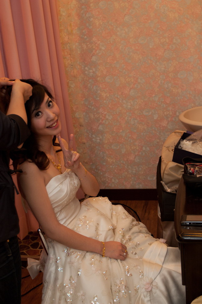新娘的朋友都說這樣今天晚宴的造型都很符合宛婷的個性......可愛^^