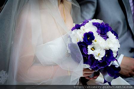 手上握的是薰小妹為她特別手綁的...帶著巴洛克風的紫白系優雅美麗棒花.