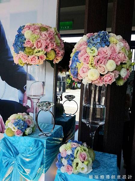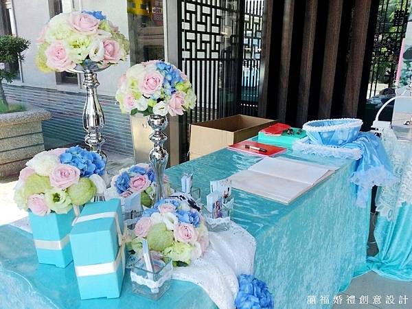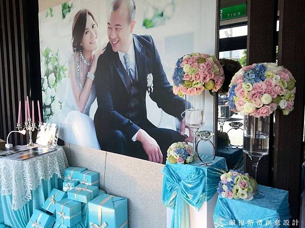 我們加上了粉,讓Tiffany躍上婚禮,成為主題婚禮佈置,